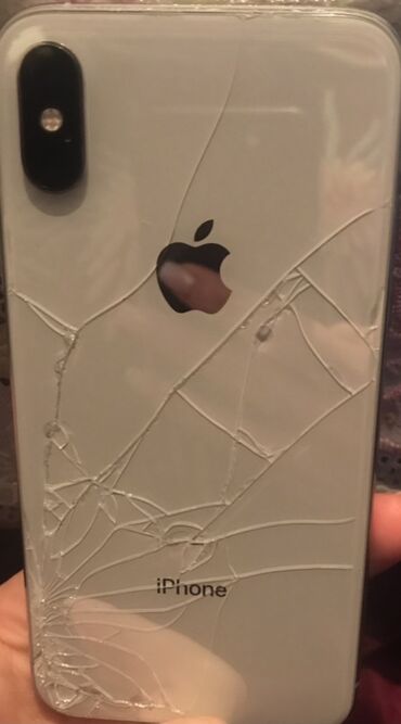 IPhone X, 5.8" OLED Super Retina, цвет Silver. Разбито заднее стекло корпуса (на фото видно), передний экран целый и работает: сенсор и дисплей откликаются, Face ID присутствует, камера и вспышка н...