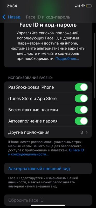 - iOS с тёмной темой, работает Face ID, звонки/мессенджеры/банковские приложения