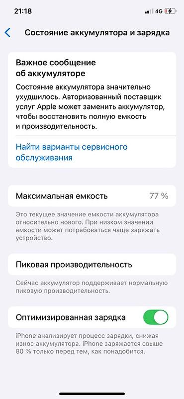 - Включена «Оптимизированная зарядка».