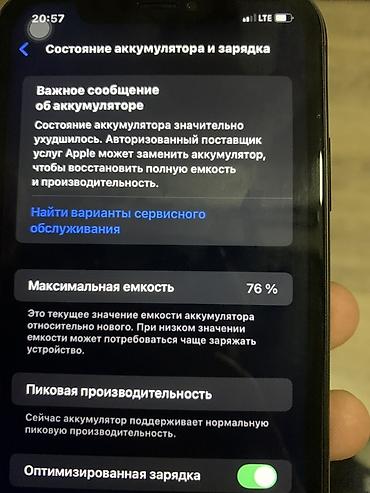 - Аккумулятор: максимальная емкость 76% (в настройках отображается сообщение о необходимости замены для восстановления полной емкости и производительности)