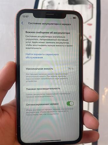 - Состояние аккумулятора по настройкам на фото: максимальная ёмкость 76%, есть уведомление о необходимости сервисной замены для восстановления полной ёмкости.