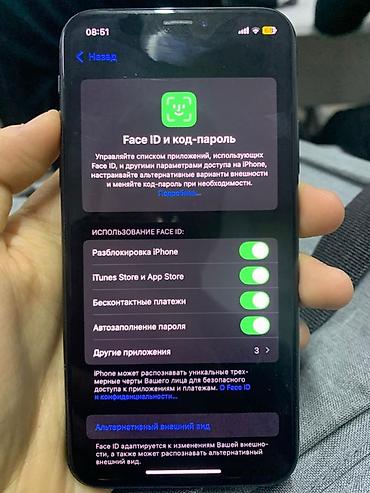 - Face ID работает: разблокировка iPhone, iTunes Store и App Store, бесконтактные платежи, автозаполнение паролей (переключатели активны на скриншоте)