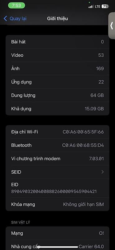 - На скриншотах — раздел «Об этом устройстве» с информацией о версии iOS, серийном номере и модеме (7.03.01)