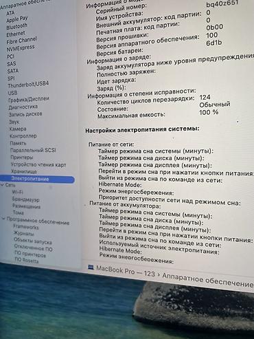 - Аккумулятор: 124 цикла перезарядки, максимальная ёмкость 100% (скриншот из «Системной информации» прилагается).