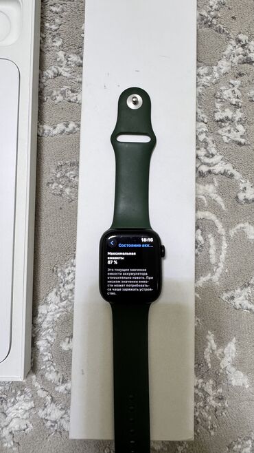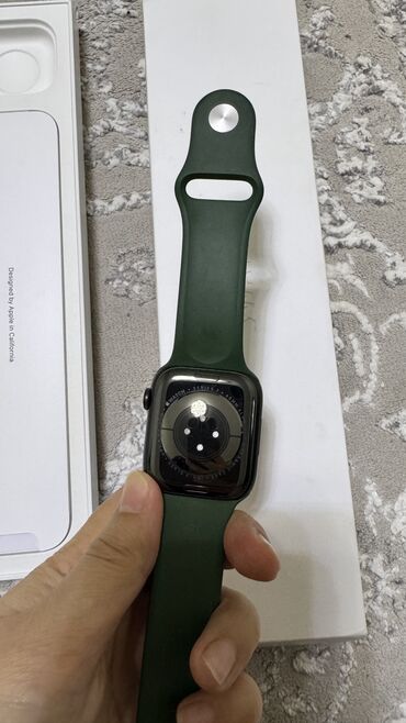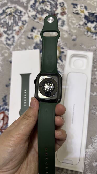 Смарт-часы Apple Watch Series 7, размер 45 мм, корпус алюминий, стекло Ion‑X. На задней крышке: датчики сердечного ритма/SpO₂, оптические и электрические сенсоры. Влагозащита WR50 (до 50 м). Версия...