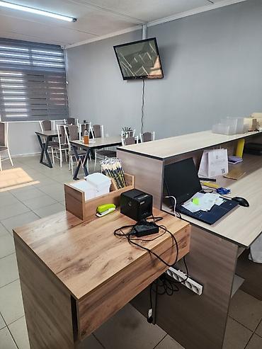 - Зал и рабочая зона с барной стойкой/раздаточной, стеллажами и местами под упаковку заказов.