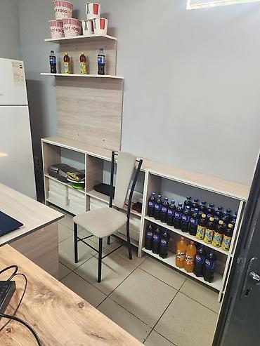 - Холодильник, рабочие столы, стеллажи для хранения, витринные полки под напитки.