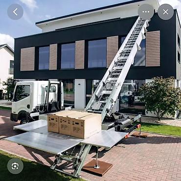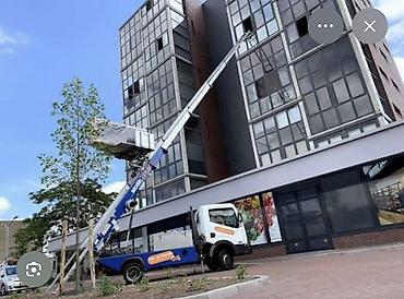 Услуга: грузовой подъёмник на базе автомобиля (мебельный/строительный лифт). Назначение: - Подъём грузов на высоту через фасад здания: мебель, бытовая техника, оконные блоки, стройматериалы, мешки...
