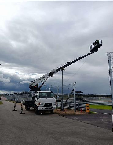 Аренда автовышки (автогидроподъёмника) для высотных работ. Технические возможности: - Рабочая высота подъёма: до 22–28 м (по фото – телескопическая стрела с корзиной). - Грузоподъёмность корзины: ...