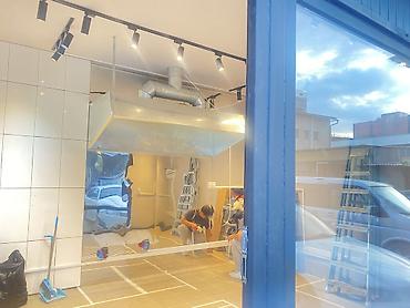 - Входная группа: распашная дверь, широкая витрина с прозрачным стеклом для естественного освещения и обзорной выкладки.