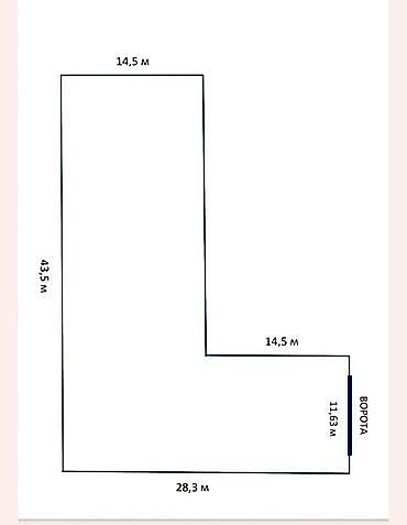 • стороны: 14,5 м; 43,5 м; 28,3 м; внутренний участок 14,5 м; участок с воротами 11,63 м