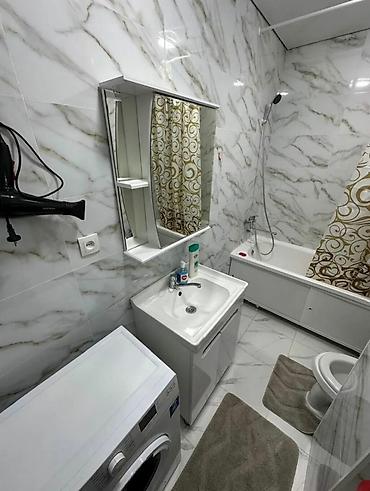 Сдаётся просторная 2‑комнатная квартира студийной планировки 65000сом+счета Описание: - Большая гостиная с зоной отдыха: диван, кресло, стеклянный журнальный столик, настенный телевизор, кондицион...