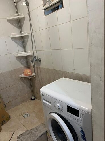 - Санузел/душ: плитка на стенах и полу, душ с лейкой и угловыми полками, трап для слива. Стиральная машина Beko с фронтальной загрузкой.