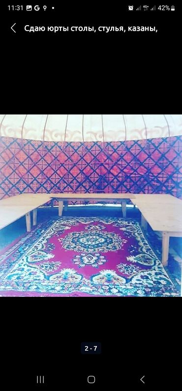 Аренда традиционных кыргызских юрт. - Просторные юрты с национальным орнаментом, деревянным каркасом и войлочным покрытием. - Внутри: украшенная решётчатая стенка (кереге), купольные прутья (уук),...