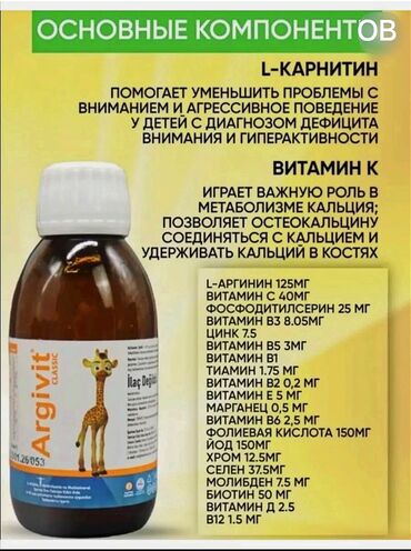 Для костейДля работы мозгаДля ростаДля улучшения памятиДругое назначениеАРГИВИТ КЛАССИК 150мл.