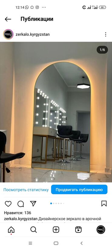 Стоимость за м2: Простое зеркало, с закругленной обточкой - 2500 сом/м2. С фацетом( обточка декоративная 1см) - 3000 сом/м2; В алюминиевой рамке, прямоугольное(золотая, черная и серебристая рамки)...