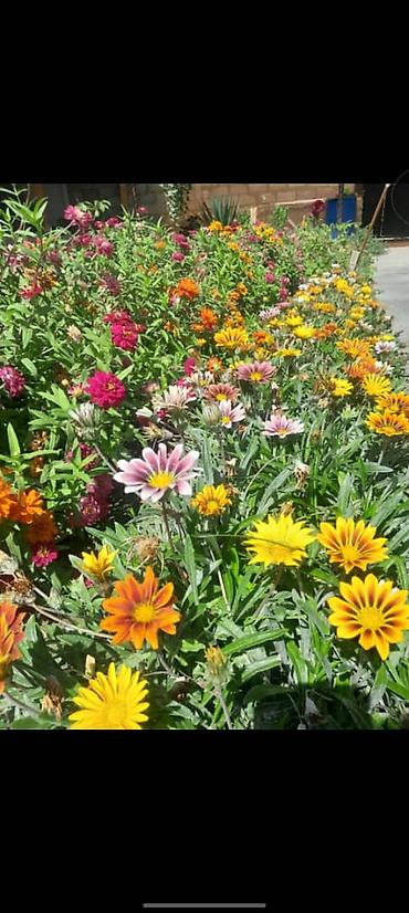 - Рассадные и садовые цветы для клумб: микс яркоокрашенных соцветий разных оттенков (жёлтые, оранжевые, розовые, лиловые). Для озеленения двора и палисадников.