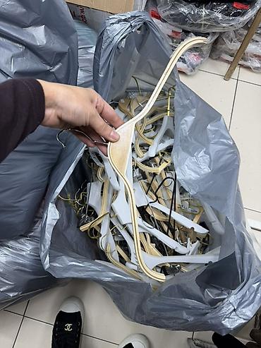 Вешалки для одежды —по 20сом Описание: - Большие партии вешалок в пакетах. - Разные виды: плечики для верхней одежды и рубашек, вешалки с прищепками для брюк/юбок, тонкие металлические и пластик...