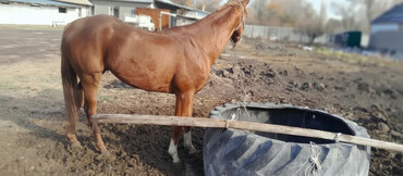 Бээ 5 жаш бооз колу буту соо ден соолугу чын жоош ! Лошадь (масть гнедая), вероятно кобыла, на привязи. Крепкий костяк, широкая грудь, выраженная мускулатура крупа. Конечности ровные, копыта т...