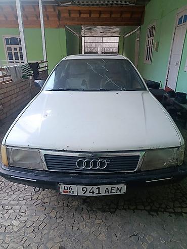 Audi 100 C4 универсал, белый цвет, на киргизских номерах (KG, номер на фото). Передняя оптика с желтыми указателями, заводская решетка радиатора, тонировка боковых и заднего стекол. Легкосплавные д...