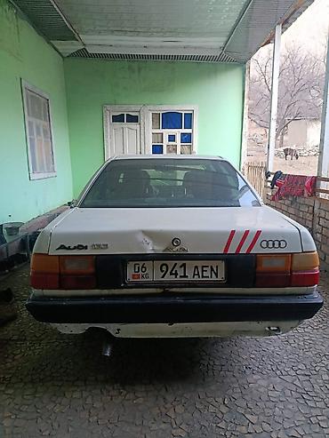 Audi 100 C3 седан, левый руль. Основные особенности: - Кузов: серый цвет, 4 двери, задний бампер с фаркопом, заводские шильдики Audi 100 C3. Лобовое с полосой-наклейкой Audi. - Оптика: прямоуголь...