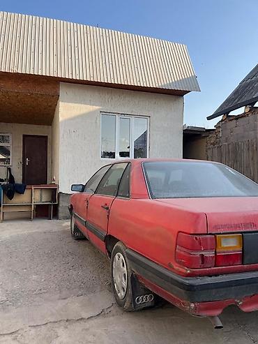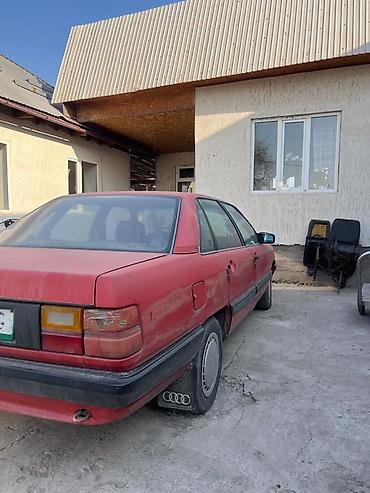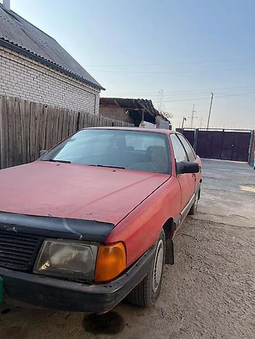 Audi 100 C3 (седан), ориентировочно конец 80‑х – начало 90‑х годов выпуска. Кузов окрашен в красный цвет с черными молдингами и бамперами.
