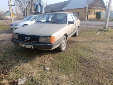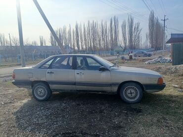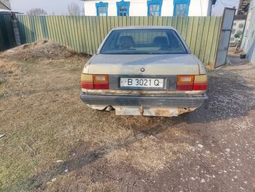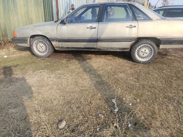 Audi 100 (C3), седан, бежевый/серый цвет кузова. Классический «сигарообразный» дизайн, 4 двери, просторный салон. Литые диски «сеткой», стандартные бампера, фирменная решётка радиатора с эмблемой Audi. Задний фаркоп для прицепа. Боковые молдинги по периметру кузова, штатные зеркала и дверные ручки, прямоугольные передние фары и горизонтальные задние фонари. Металлические номерные рамки.