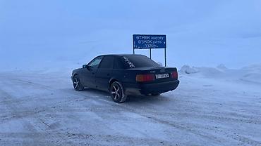 Audi 100 C4 седан, тёмно‑синий/чёрный цвет кузова.