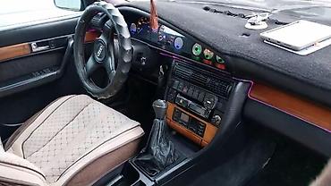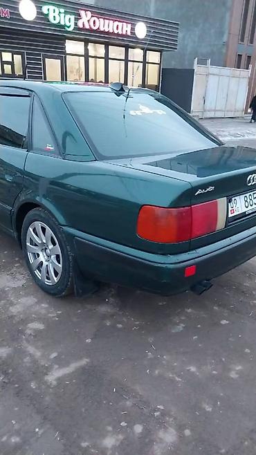 Audi 100 C4 седан, тёмно‑зелёный цвет. Классический немецкий бизнес‑седан с просторным салоном и большим багажником.