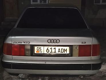 Audi 100, седан, серебристый цвет. Бензиновый двигатель 2.3 (эмблема “2.3” на крышке багажника). Кузов тип С4/С3 с фирменной четырёхкольцовой эмблемой сзади. Задние фонари раздельные, центральный плафон подсветки номера. Тонированные стекла по кругу. Литые диски, зимние шины. Черные бампера и молдинги по периметру. Четыре двери, просторный салон и большой багажник — классический комфорт Audi 100. Отлично подходит для повседневных поездок и длительных трасс благодаря надежному атмосферному мотору 2.3 и удобной посадке. Номерной знак KG на фото.