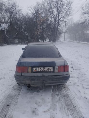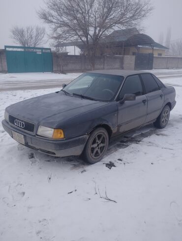 Audi 80 B4, седан, темно-серый цвет. Киргизские номера (08 KG). Кузов пятидверный, тонировка задних стекол. Литые диски, зимние шины. Фары прямоугольные, фирменная решетка с логотипом Audi. Задняя часть с буксировочным крюком/фаркопом. Бензиновый двигатель (классическая продольная компоновка для этой модели), привод передний. Салон на 5 мест, классическая панель приборов Audi 80. Подходит как надежный городской автомобиль: удобная посадка, большой багажник, хорошая тепло- и шумоизоляция для своего класса. Простая и недорогая в обслуживании конструкция, доступность запчастей на эту модель.