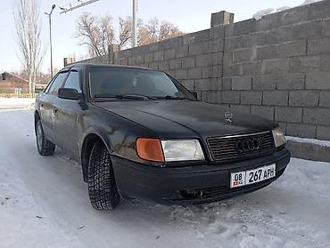 Audi с4 седан, черный цвет. Передний привод. Кузов с классическими прямыми линиями, оригинальная решетка радиатора с эмблемой Audi, капот с декоративным значком. Галогеновые прямоугольные фары, передние указатели поворота янтарного цвета.