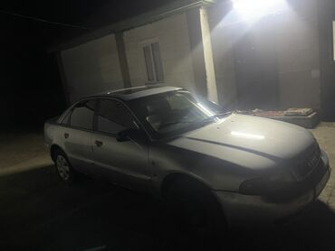 Audi A4 седан (B5), серебристый цвет, 4 двери, тонированные стекла. Кузов с черными бамперами и молдингами, литая/штампованная сталь, колпаки. На крыше — стеклянный люк.