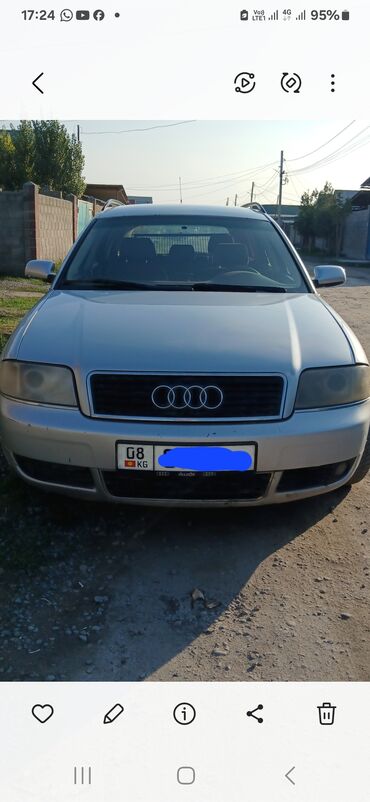 Автомобиль на киргизских номерах G8 KG, серебристый цвет, на фото видны рейлинги, фирменная решётка Audi и эмблемы модели. Отличный семейный и путешественнический универсал с экономичным дизелем и полным приводом.