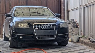 Audi A6 седан, чёрный цвет кузова. Классический дизайн C4, 4 двери, тонированные стёкла. На крышке багажника обозначение 2.0. Легкосплавные диски с декоративными колпаками, одинарный выхлоп. Передн...