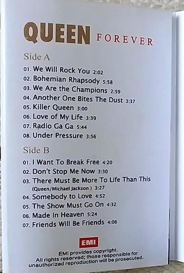 Аудиокассета Queen – “Forever” (EMI). Фирменное издание на магнитной кассете с прозрачным оранжевым корпусом и печатными наклейками. В комплекте разворотный буклет-обложка с фотографией группы и списком треков.
