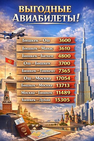 Авиабилеты Ош -Москва Москва -Бишкек Бишкек -Стамбул Дубай -Бишкек Бишкек-Санкт -Петербург и т д Авиабилеты по всем направлениям ✈️ Выгодно Надежно Купить билеты можно онлайн или по адрес...