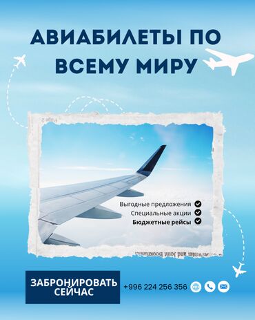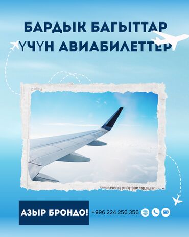 ✈️ Авиабилетти сом менен да, рубль менен да сатып алыңыз! 📍 Бишкек шаарындагы авиакасса Арзан баалар 100% кепилдик Онлайн сатып алуу мүмкүнчүлүгү Байланыш номерлери: 📞 + 📞 + Дарек: Жибек-Жолу көчөс...