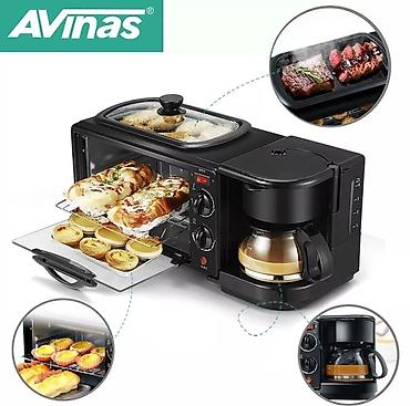 AVINAS AV-9L 3 в 1 - это многофункциональная электрическая машина для завтрака, объединяющая в себе кофеварку, сковороду и мини-духовку.