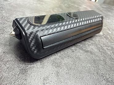 Компактный аксессуар с карбоновым дизайном, который аккуратно смотрится в салоне и заменяет бумажки с номером. Так же сбоку аварийный стеклобой.