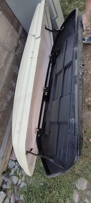 Комплектация по фото: корпус бокса с крышкой, петли/кронштейны, направляющие на днище. Подойдет для большинства автомобилей с поперечинами.
