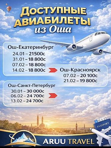 - Ош — Санкт‑Петербург: 30.01 — 30 000 c; 06.02 — 24 700 c; 13.02 — 24 700 c
