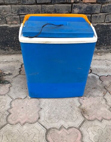 - Крышка: двойная, с ручкой для переноски; сверху виден разъем/шнур питания для работы от автомобиля (12 В)