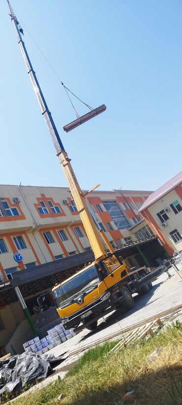 Услуги автокрана. - Колесный автокран XCMG, жёлтый, стреловой. - Грузоподъемность до 20–25 т (типовой класс для данной модели). - Телескопическая стрела с несколькими секциями, большой вылет для р...