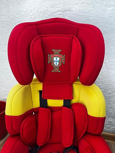 - Комфорт: мягкая обивка с ярким дизайном (красно‑желтая гамма, эмблема на подголовнике), анатомичная форма сиденья.
