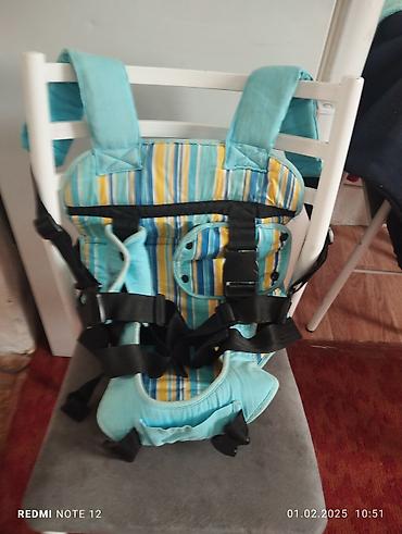 Эргономичная переноска-кенгуру для младенцев и детей младшего возраста. Изделие выполнено в яркой расцветке с вертикальными полосами синего, желтого и белого цветов. Оснащена регулируемыми плечевыми ремнями и поясным ремнем для равномерного распределения веса. Мягкие широкие лямки обеспечивают комфорт для родителя, а также поддержку для головы и шеи ребенка. Предусмотрены надежные застежки-фастексы для быстрой и безопасной фиксации. Подходит для прогулок и путешествий, позволяя держать ребенка близко и освобождая руки.