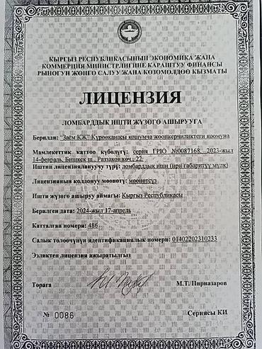 Быстрый займ под залог авто без изъятия Удобная локация!!! Сумма займа от 10 000 до 300 000 сомов за 20 минут. Необходимые документы: Паспорт гражданина Кыргызской Республики; Свидетельство о рег...