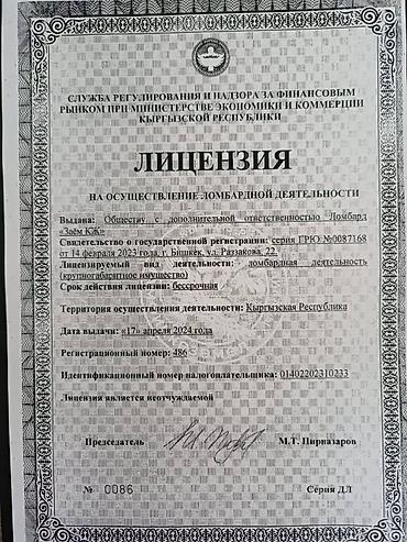 Быстрый займ под залог авто без изъятия Удобная локация!!! Сумма займа от 10 000 до 300 000 сомов за 20 минут. Необходимые документы: Паспорт гражданина Кыргызской Республики; Свидетельство о ре...