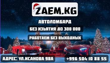 Zaem KG Быстрый займ под залог авто без изъятия до 300 000 сом. Удобная локация! У нас выгодные условия! Сумма займа от 10 000 до 300 000 сомов за 20 минут. Необходимые документы: Паспорт граждан...