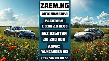 Быстрый займ под залог авто без изъятия Удобная локация!!! Сумма займа от 10 000 до 200 000 сомов за 20 минут. Необходимые документы: Паспорт гражданина Кыргызской Республики; Свидетельство о рег...